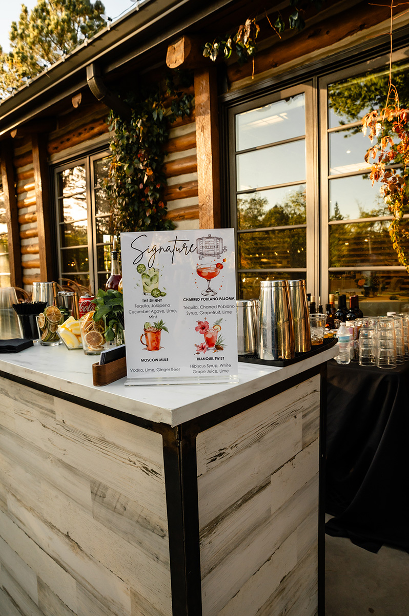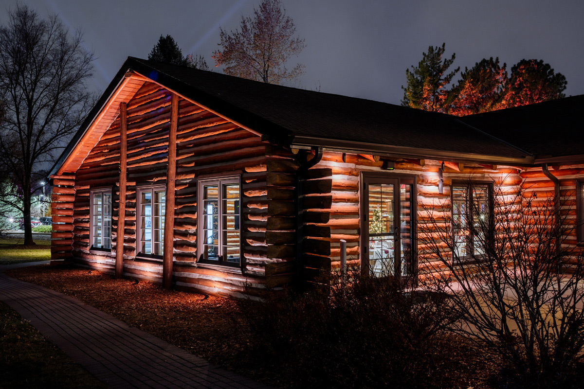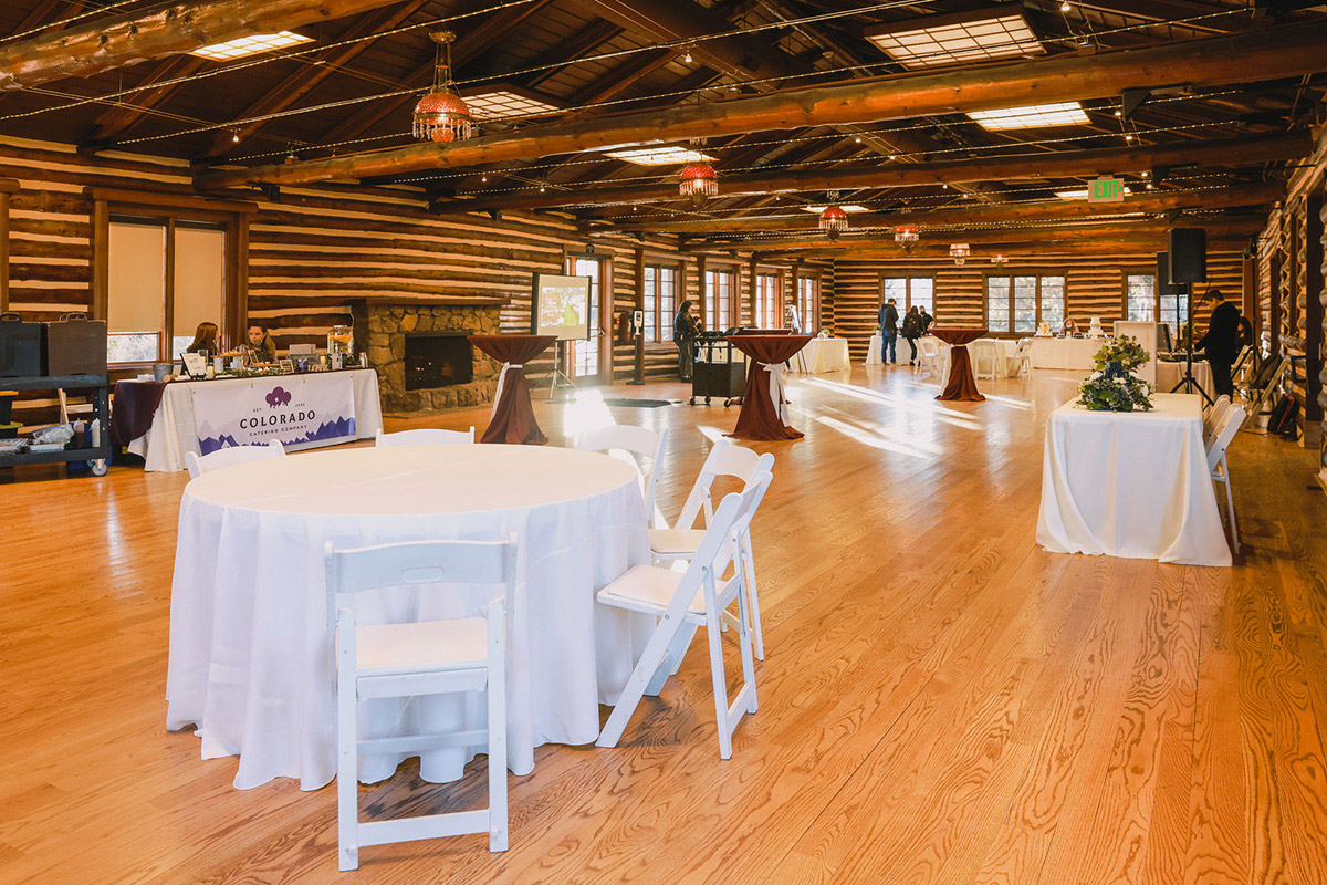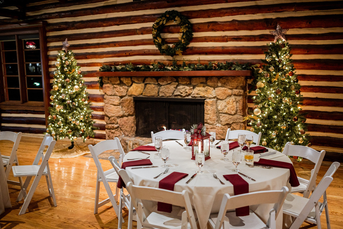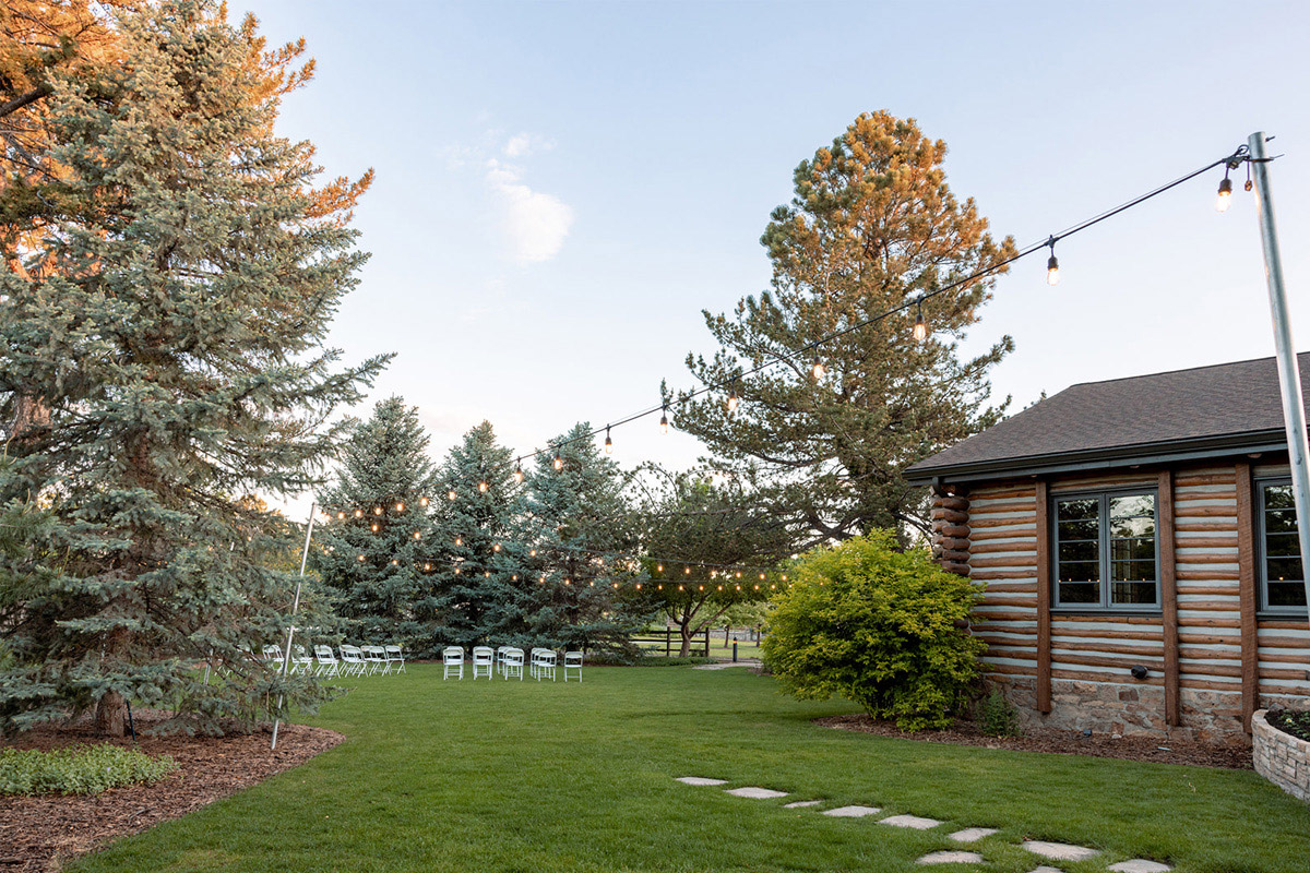 The Inn is our historic log cabin built in 1941. It is surrounded by striking evergreen trees year-round and colorful blooms in the spring and summer. Additional space is available in the Inn’s backyard for wedding ceremonies, cocktail hours, and more.
